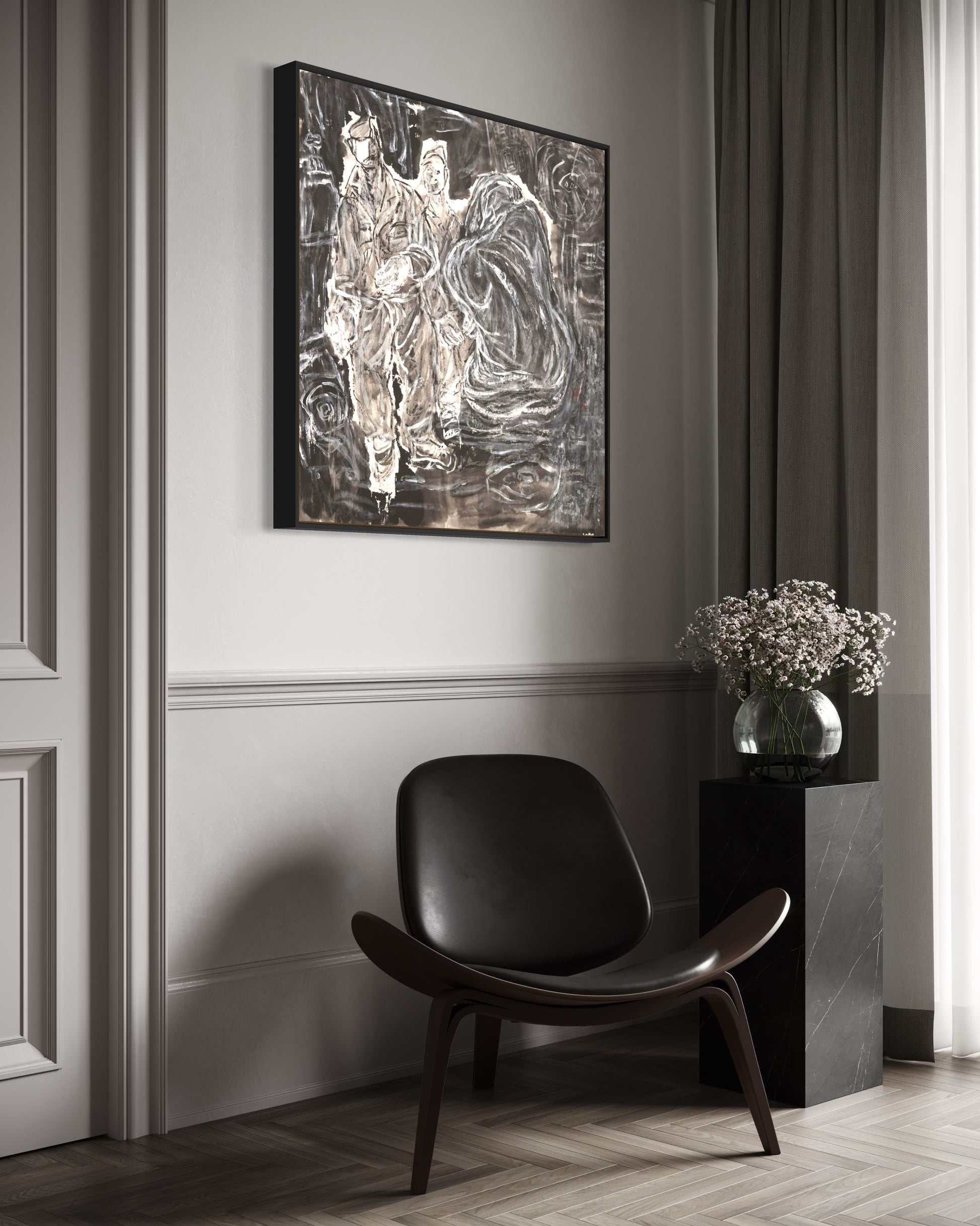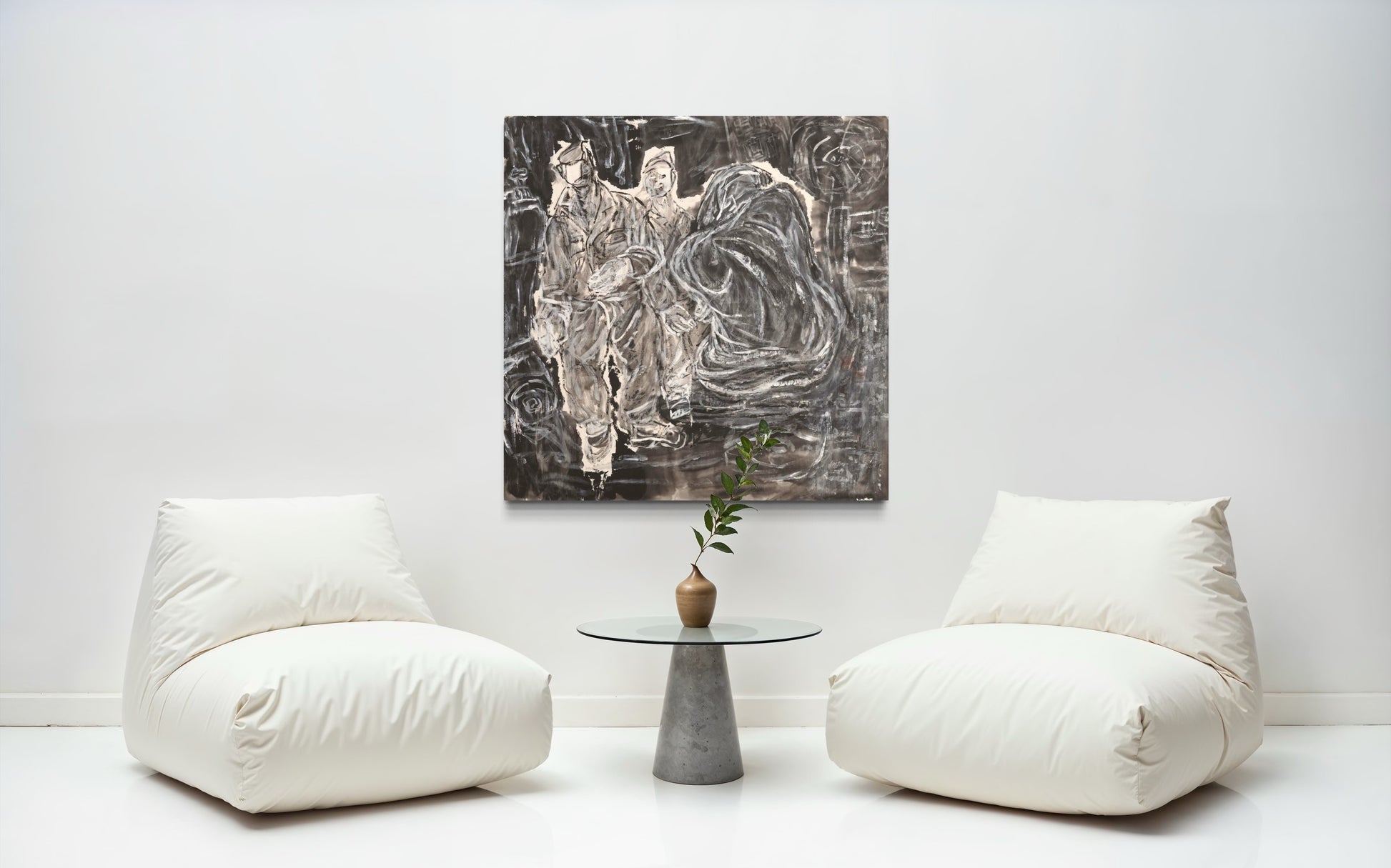 Echoes Beneath the Cloak speaks in muted tones and ghostly outlines, capturing a fleeting moment wrapped in memory, hardship, and human connection. Guoliang Xu's original acrylic on paper evokes the quiet strength of figures both seen and obscured—soldiers, shadows, and histories lingering beneath heavy folds. This expressive canvas print preserves the textured urgency of the original while inviting quiet reflection in any space.