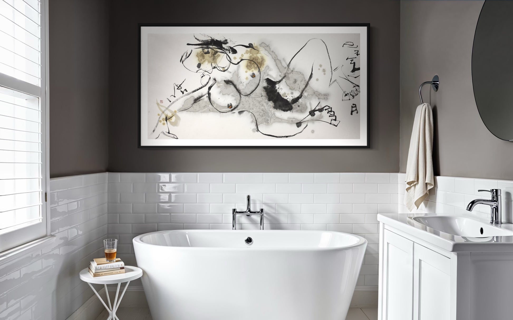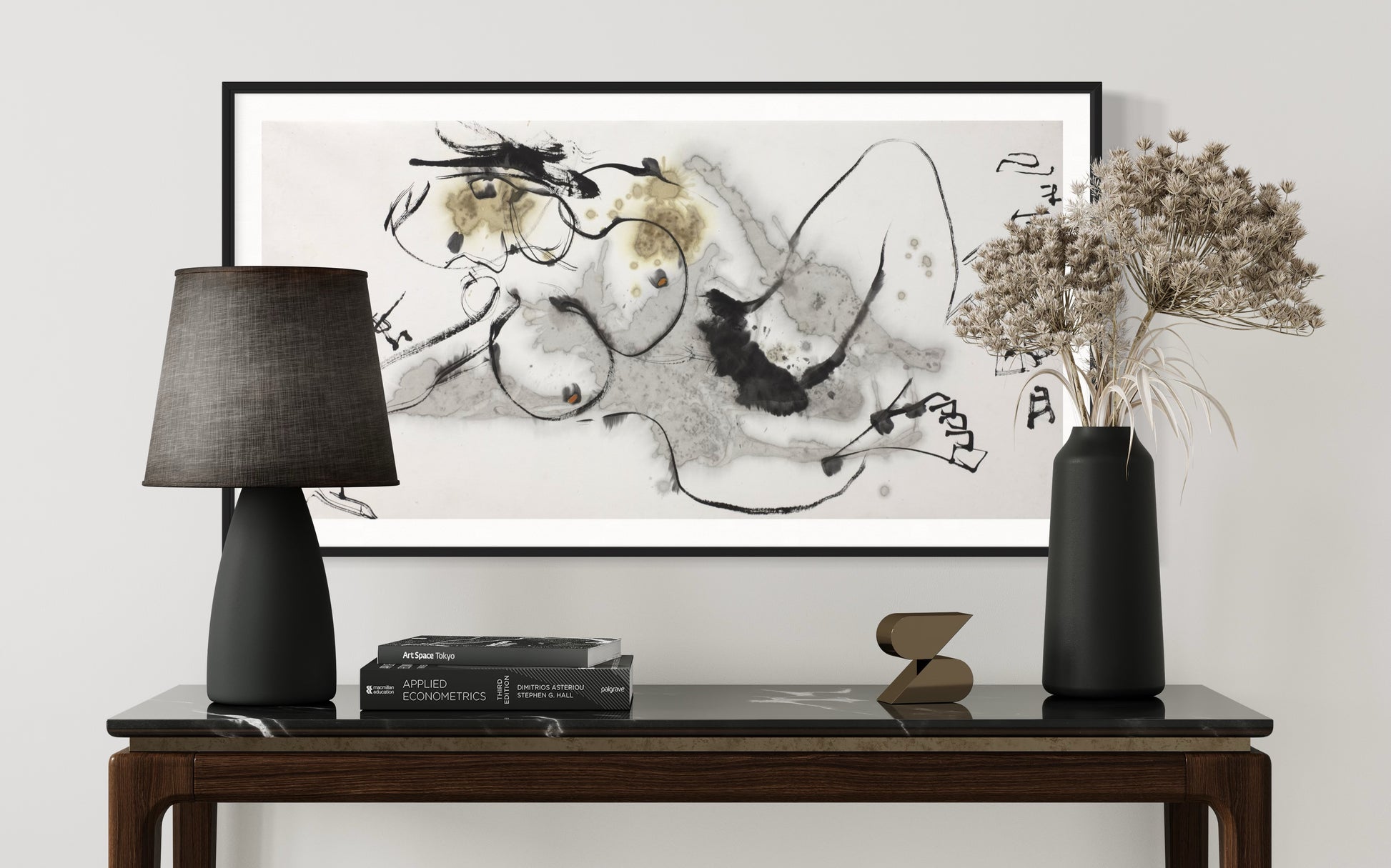 This evocative canvas print by contemporary artist Guoliang Xu captures the graceful essence of femininity through flowing lines and expressive brushwork. Originally created in Chinese ink style, the artwork blends classical elegance with modern abstraction. A reclining figure emerges through poetic strokes and soft pigments, balanced by traditional calligraphy that invites quiet reflection.